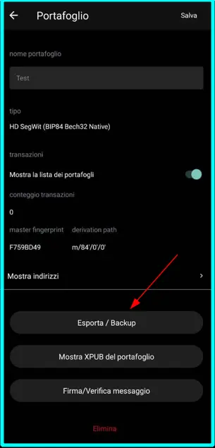 Queste parole saranno disponibili anche dopo la creazione del wallet, sotto la voce Esporta / Backup.
