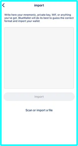 Per importare un wallet su BlueWallet, seguire i seguenti punti: